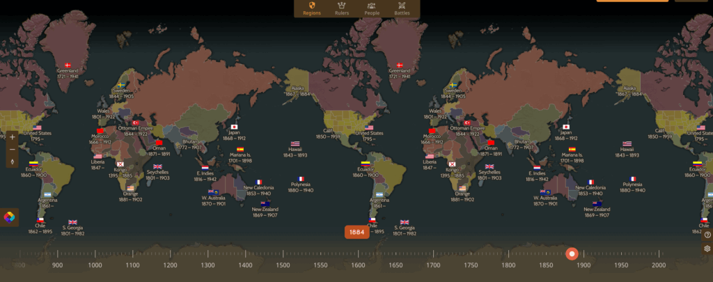 اگر به تاریخ علاقه دارید شاید این سایت برای شما جالب باشه. توی این سایت میتونید نقشه کشورهای مختلف رو در زمانهای مختلف تاریخ ببینید و جالبتر اینکه نه تنها نقشه، بلکه رئیسجمهور، نبردها و مبارزات رو هم ببینید.
