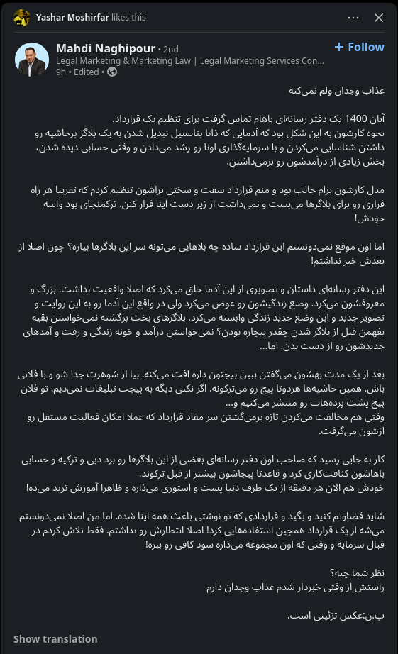 چند روز پیش پستی رو داخل لینکدین دیدم که بنظرم جالب اومد. شما هم ببینید :