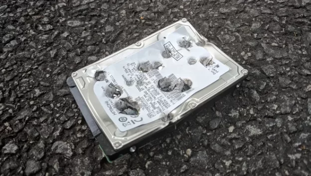 توی حذف واقعی ایده این هست که داده واقعا از بین میره هر چند باید بدونیم که توی این حالت هم داده واقعا از بین نمیره بلکه به این راحتی ها دیگه بهش دسترسی نداریم، کماکان اگر از برنامه های ریکاوری استفاده کنیم اون داده رو میتونیم برگردونیم و به همین خاطر هست که میگن اگر هاردتون رو میخواید دور بندازید با پیچگوشتی سه تا سوراخ روش بزنید تا مطمئن باشید که دیگه هیچ دادهای قابل بازگشت نیست. چیزی شبیه به عکس زیر :