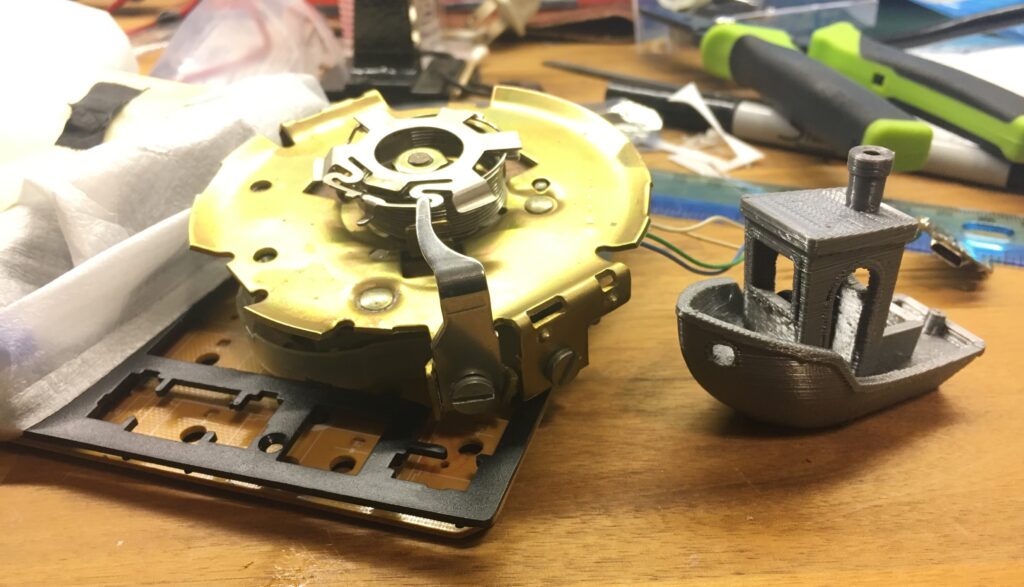 از پرینتر سه بعدی هم برای ساخت چند قطعه پلاستیکی استفاده کرده که شماره‌گیر رو به کیبرد وصل می‌کنه.