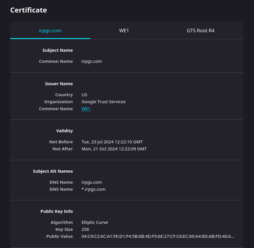 کار بعدی که من انجام دادم بررسی SSL certificate بود. با بررسی SSL certificate میخواستم ببینم issuer این certificate چه کسی بوده.